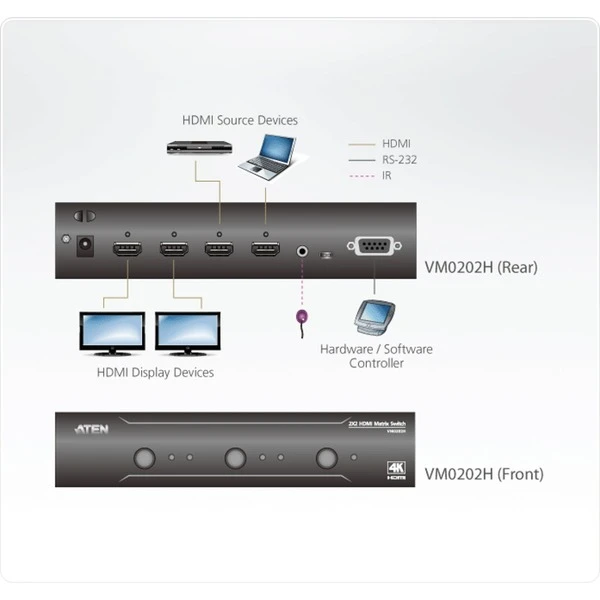 Der VM0202H ist ein 2 X 2 HDMI Matrix Switch, der die HDMI Spezifikationen erfüllt und Funktionen wie 3D, Deep Color bis zu 12 Bit und Datenraten bis zu 10,2 Gbps bietet. Für den zukünftigen Trend von hochauflösendem Video Switching entwickelt, unterstützt der VM0202H Computer-und Videosignale bei Auflösungen bis zu 4K. Der VM0202H Matrix Switch bietet ein leistungsstarkes Routing von zwei HDMI Videoquellen wie HD-Camcordern, Satellitenboxen, HD-DVD Playern, hochauflösenden Blu-ray Playern, Heimkino PCs und eigenständigen Streaming Media Playern für zwei HDMI Bildschirme. Art.-Nr.: 1363663