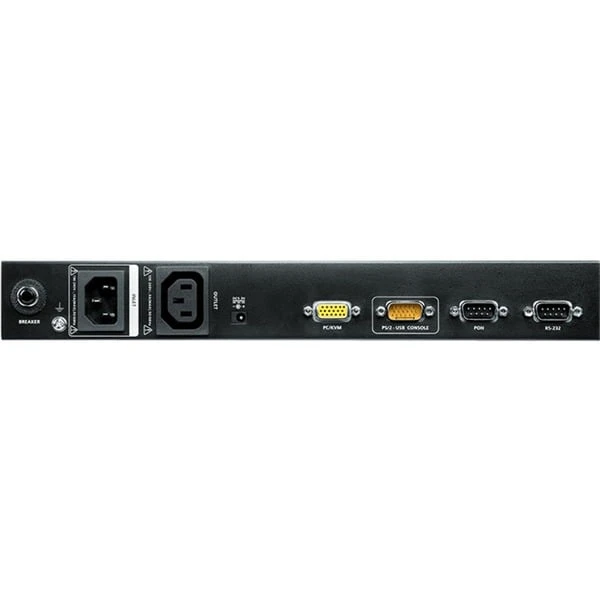 | Feature | Konsolenports: 1 x SPHD Stecker (Gelb) | KVM- (Computer) Ports | 1 x SPHD Buchse (Gelb) | Laptop USB Console- (LUC-) Port: 1 x USB-Mini-B-Buchse | PON: 1 x DB-9 Stecker | RS-232: 1 x DB-9 Stecker | Stromeingänge: 1 x IEC320 C14 | Stromanschlüsse: 1 x IEC320 C13 | Stromversorgung: 1 x Gleichspannungsanschluss | ||