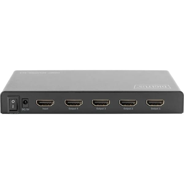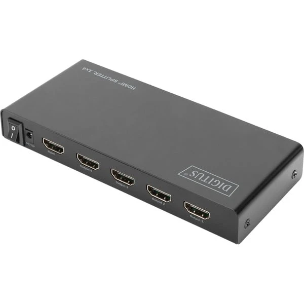 Der Digitus HDMI Splitter, 1×4, 4K / 60 Hz mit Downscaler verteilt Audio- und Videosignale des HDMI-Gerätes auf bis zu vier Bildschirme, Fernseher oder Beamer in einer Auflösung von UHD 4K /60 Hz. Zusätzlich wird auch HDR, HDCP 2.2 und 3D unterstützt – ausserdem eine Gesamtbandbreite von 18 Gbps für flüssige Wiedergabe in brillanter Qualität. Die integrierte Downscaling-Funktion unterstützt die Anzeige von 4K-Inhalten auf Full HD Displays, zusätzlich kann sowohl ein 4K als auch ein Full HD Display gleichzeitig betrieben werden. Dank der Auto-EDID-Funktion erkennt der Splitter automatisch die angeschlossenen Displays – es sind keine manuellen Einstellungen notwendig.Art.-Nr.: 1849469