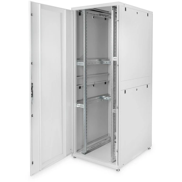 Die DIGITUS Serverschrank Unique Serie wurde für die sichere Unterbringung von Server-Equipment designet und entwickelt. Die Schrankserie ist ausgereift, das führt zu einer optimalen Leistung aus Qualität und Mehrwert. Jeder Schrank ist perfekt konzipiert, benutzerfreundlich in punkto Anwendung und ästhetisch im Aussehen. Die Unique Serie ist in vier Größen erhältlich, von 26 Höheneinheiten bis zu 47 Höheneinheiten. Zur Auswahl bei der Schrankbreite stehen 600 mm oder 800 mm, die Tiefe beträgt 1000 mm. Die Unique Serie ist ideal für kleine und mittlere Serverräume bis hin zu Multi-Data Center Installationen. Der Schrank besteht aus einer modularen Rahmenkonstruktion, die Robustheit bietet. Wesentliche Vorteile der Schrankserie sind die Luftzirkulation (hohe Perforation von 63%) und das Kühlmanagement (Belüftung). Die Unique Serie sorgt für einen einfachen Zugang zu den Komponenten mittels Schnellverschluss-System für die Seitenwände sowie für Vorder- und Rücktür. Jeder Schrank verfügt über zwei Sätze robuster 483 mm (19″)-Profilschienen, die in der gesamten Tiefe des Schrankes angepasst werden können.Art.-Nr.: 1819977