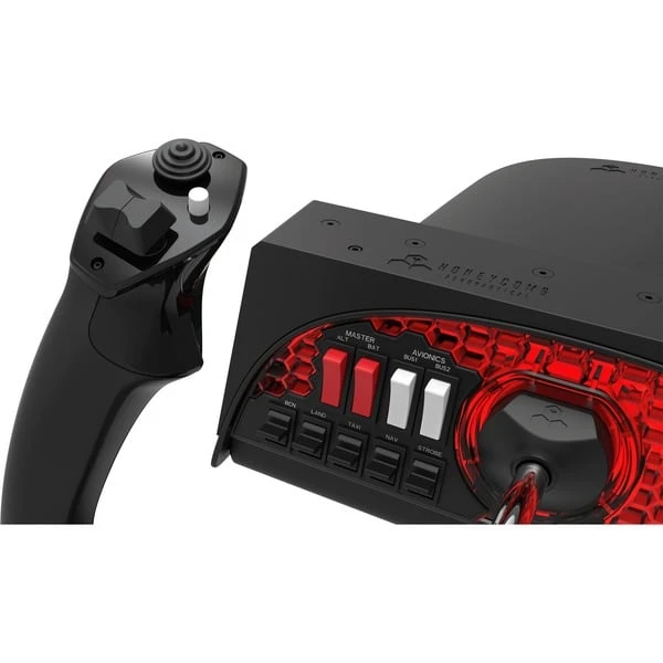 | Besonderheiten | Komponenten in Luftfahrt-Qualität, Realistische Ergonomie, 180°-Drehwinkel (selbstzentrierend), Schalttafel mit Hintergrundbeleuchtung, Zahlreiche Schalter und Tasten, Stabile Konstruktion, Montagemöglichkeiten für andere Honeycomb- und Saitek-Produkte | ||
