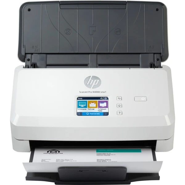 Mit dem ScanJet Pro N4000 snw1 lassen sich auch große Mengen an Dokumenten schnell und einfach digitalisieren. Dieser A4-Scanner verfügt über einen automatischen Einzug mit bis zu 50 Seiten Fassungsvermögen und ist ausgelegt für bis zu 4000 Seiten Scanvolumen pro Tag. Er besitzt viele hilfreiche Funktionen zur Verbesserung der Scanergebnisse. Dazu gehören etwa eine Farberkennung, automatisches Zuschneiden, automatische Seitenausrichtung, Lochentfernung und Hintergrundbereinigung. Der ScanJet Pro N4000 snw1 erreicht eine Scangeschwindigkeit von bis 40 Seiten pro Minute.Art.-Nr.: 1639458