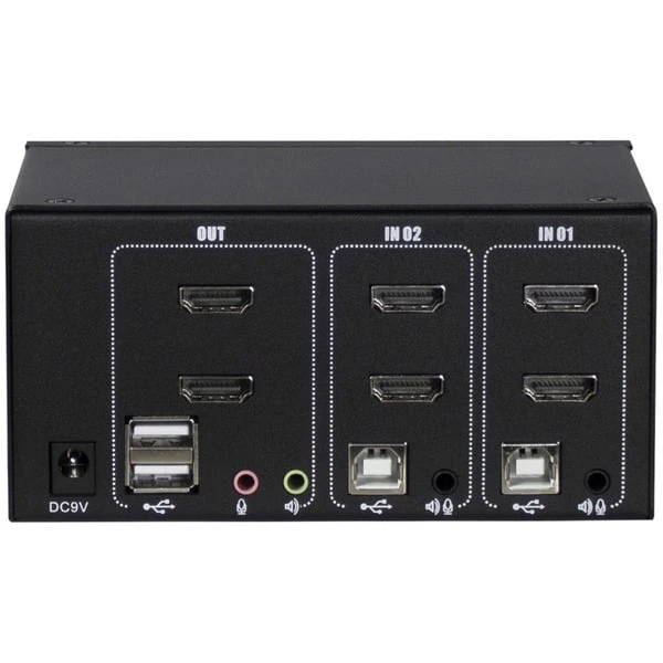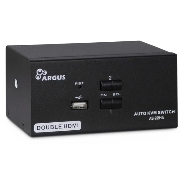 Der KVM AS-22HA HDMI ist ein günstiger 2-Port KVM-Switch mit automatischem Audioumschalter für den Desktopbereich. Der Anschluss des KVM erfolgt per USB (Tastatur / Maus), 2x 3,5mm Klinke (Audio Mic/Line) und Dual HDMI-Monitor über die zwei mitgelieferten Anschlusskabel sowie zwei weitere HDMI-Kabel (nicht im Lieferumfang) an die Computer. Über den zusätzlichen USB-Port in der Front lassen sich zudem externe Datenträger, wie z.B. USB-Sticks, anschließen und verwalten.Art.-Nr.: 1545422