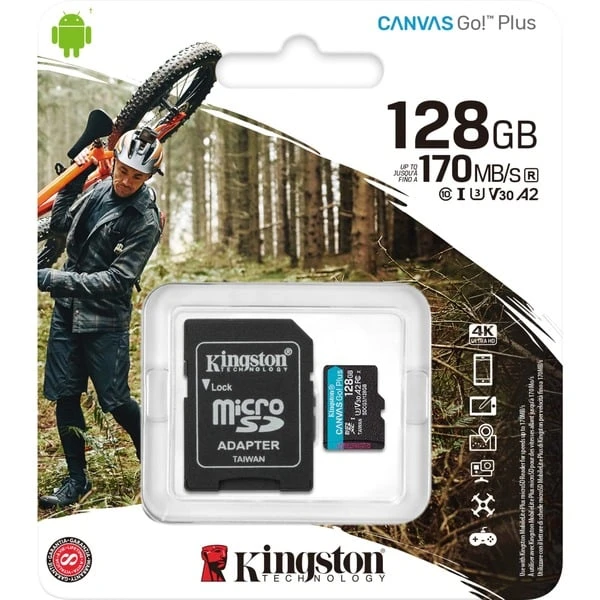 Kingstons Canvas Go! Plus microSD ist für die Abenteurer gedacht, die immer auf der Jagd nach dem perfekten Moment sind. Mit überragenden Übertragungsgeschwindigkeiten von bis zu 170 MB/s beschleunigt die Canvas Go! Plus microSD Karte die Arbeitsabläufe und Effizienz, damit man mehr Zeit hat, seine Kreativität beim nächsten Abenteuer einzusetzen. Mit der U3- und V30-Geschwindigkeitsleistung nimmt man beeindruckende 4K Ultra-HDVideos auf, ohne sich über langsame Geschwindigkeiten und ausgelassene Bilder Gedanken machen zu müssen.Art.-Nr.: 1626800