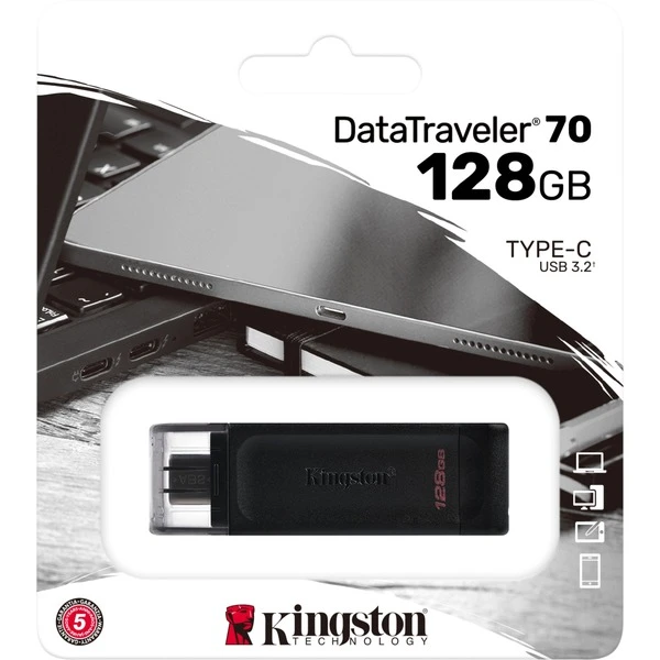 Kingstons DataTraveler 70 ist ein tragbarer und leichter USB-C-Stick, der USB 3.2 Gen 1-Geschwindigkeiten bietet. Er wurde für kompatible USB-C-Geräte entwickelt, wie z. B. Notebooks, Laptops, Tablets und Smartphones. Mit Speicherkapazitäten von bis zu 128 GB ist der DataTraveler 70 bestens in der Lage, den Speicher für den täglichen Gebrauch zu erweitern.Art.-Nr.: 1650440