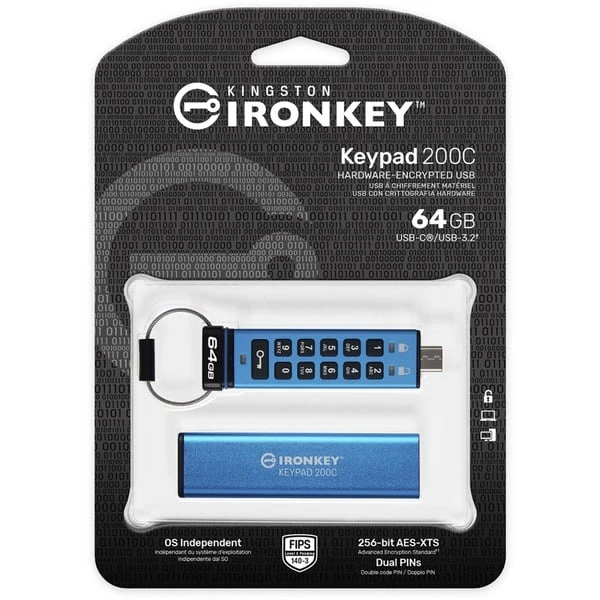 Kingston IronKey Keypad 200 ist ein betriebssystemunabhängiger, hardwareverschlüsselter USB-Stick mit einer alphanumerischen Tastatur für den benutzerfreundlichen PIN-Zugriff. Er verfügt über eine XTS-AES 256-Bit-Hardware-Verschlüsselung ist nach FIPS 140-3 Level 3 zertifiziert. Die Schaltkreise sind mit einer speziellen Epoxidschicht überzogen, die es praktisch unmöglich macht, die Komponenten zu entfernen, ohne sie zu beschädigen. Der USB-Stick bietet Schutz vor Brute-Force-Passwortangriffen und BadUSB-Schutz mit digital signierter Firmware.