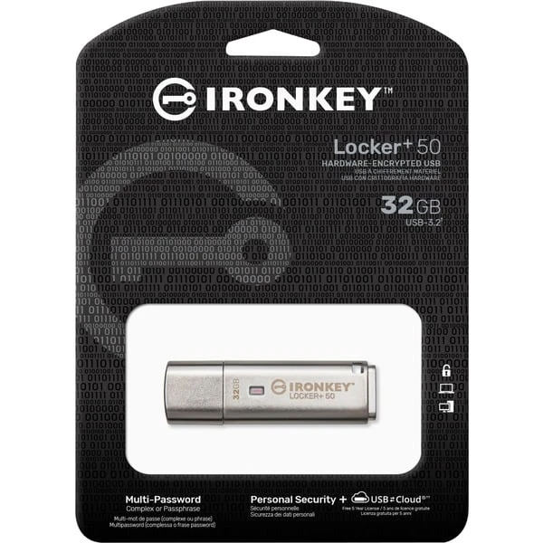 Kingston IronKey Locker+ 50 USB-Sticks bieten Sicherheit auf Verbraucherniveau mit AES-Hardwareverschlüsselung im XTS-Modus, einschließlich Schutzmaßnahmen gegen BadUSB mit digital signierter Firmware und Brute-Force-Passwortangriffen. Der LP50 ist zudem TAA-konform. Der LP50 unterstützt nun die Multi-Passwort-Option (Admin und Benutzer) mit Komplex- oder Passphrasenmodi. Mit Komplexmodus sind Passwörter mit 6 bis 16 Zeichen unter Verwendung von 3 von 4 Zeichensätzen zulässig. Der neue Passphrase-Modus lässt eine numerische PIN, einen Satz, eine Wortliste oder sogar Texte mit einer Länge von 10 bis 64 Zeichen zu. Der Administrator kann ein Benutzerpasswort aktivieren oder zur Wiederherstellung des Datenzugriffs das Benutzerkennwort zurücksetzen. Der Brute-Force-Angriffsschutz sperrt Benutzerpasswörter nach 10 ungültigen Passworteingaben hintereinander und kryptolöscht nach 10-maliger fehlerhaften Eingabe hintereinander den USB-Stick. Darüber hinaus schützt eine integrierte virtuelle Tastatur Passwörter vor Keyloggern oder Screenloggern. Locker+ 50 verfügt über ein kleines Metallgehäuse und eine integrierte Schlüsselschlaufe für mehr Bequemlichkeit, sodass Sie Daten überall hin mitzunehmen können. LP50 lässt sich einfach ohne zusätzlicher Anwendungsinstallation einrichten und verwenden.Art.-Nr.: 1853643