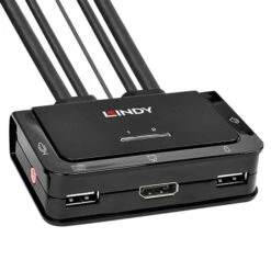 Der Lindy 2 Port DisplayPort 1.2, USB 2.0 & Audio KVM Switch ist eine kompakte Lösung für den Zugang zu zwei PCs mit DisplayPort Anschlüssen und deren Steuerung mit nur einer Tastatur, Maus und Monitor. Mit seinen integrierten Kabeln kann der Switch problemlos angeschlossen werden. Zusätzliche Kabel sind für die Installation nicht erforderlich. Unterstützt HDMI 2.0 Signale bis 4K 60Hz. Der Audioausgang des Hauptgeräts erlaubt den Anschluss von Kopfhörern oder Lautsprechern für 2-Kanal-Audio und den Anschluss eines Mikrofons. Zusätzliche USB-Peripheriegeräte können mit einem USB Hub verbunden werden. Der KVM Switch bietet zahlreiche Umschaltoptionen z.B. Steuerung über Drucktaste (mit 1,5m Kabel), per Tastatur-Hotkey und auch über Software.Art.-Nr.: 1856649