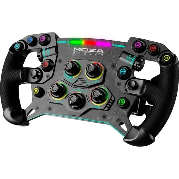 Das MOZA GS V2 GT Wheel Microfiber Leather ist ein voll ausgestattetes, E-Sports-taugliches 300 mm (11,8 Zoll) großes Sim-Lenkrad im GT-Stil, das für maximales Eintauchen ohne Kompromisse entwickelt wurde. Seine perforierten Griffe aus Mikrofaserleder fühlen sich im Vergleich zu Gummi hochwertig und edel an. Der robuste Rahmen aus hochfester, geschmiedeter 5 mm starker Kohlefaser sorgt für ein ausgewogenes Gefühl und bewährte Zuverlässigkeit. MOZAs maßgefertigtes Schnellwechselsystem, das von echten Rennsystemen inspiriert wurde, ermöglicht es Rennfahrern, das Lenkrad in Sekundenschnelle zu wechseln. Das das GS V2 GT Wheel verfügt über zehn programmierbare mechanische Tasten mit einem befriedigenden Klicken, um sicherzustellen, dass man jede Änderung spürt. Die beleuchteten Tasten können auch in der MOZA Pit House App angepasst werden, mit einer Auswahl von acht verschiedenen Farben. Zwei drückbare Analog-Sticks und fünf Drehregler bieten dem Fahrer volle Kontrolle während eines Rennens. Die zwei magnetischen Kohlefaser-Schaltwippen des GS V2 GT Wheel haben ein gutes Gewicht, wodurch sich jeder Schaltvorgang angenehm anfühlt. Sie lassen sich leicht zwischen einem Einzel- und einem Doppelkupplungsmodus umschalten, wie er in professionellen Rennsimulationen, zum Beispiel iRacing und der F1-Serie, verwendet wird. Mit zehn leuchtstarken RGB-LEDs lassen sich die Drehzahl- und Schaltanzeigen in sieben verschiedenen Farben individuell gestalten, um dem Rennsport-Setup eine einzigartige Note verleihen. Sowohl die Beleuchtungsanpassung als auch Tastenprogrammierung kann bequem über die MOZA Pit House Software vorgenommen werden.Art.-Nr.: 1912670