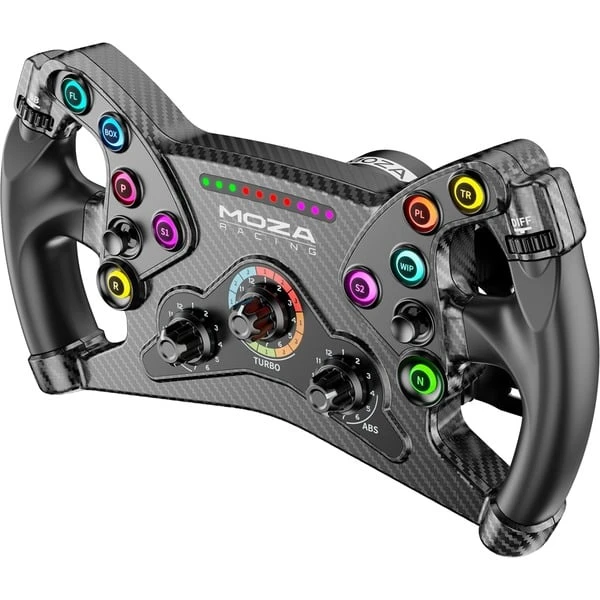 Das MOZA KS Steering Wheel bietet mit seinem schlanken Schmetterlingsdesign und seiner Größe von 300 mm (11,8 Zoll) das ultimative Gefühl von Realismus. Es ist aus kohlefaserverstärktem Verbundwerkstoff gefertigt und verfügt über eine starke und langlebige Oberfläche. Die TPE-Griffe bieten ein weiches und präzises Fahrgefühl sowie hervorragende Haftung und hohe Reibungskräfte für eine präzise Lenkkontrolle. Sie sind mit einem korrosionsbeständigen Material beschichtet, um die Haltbarkeit zu erhöhen und vor Abnutzung und Verschleiß zu schützen. MOZAs maßgefertigtes Schnellwechselsystem, das von echten Rennsystemen inspiriert wurde, ermöglicht es Rennfahrern, das Lenkrad in Sekundenschnelle zu wechseln. Das KS Steering Wheel besitzt zehn beleuchtete Tasten mit 0,25 mm kurzem Hub und acht anpassbaren Farboptionen, die eine blitzschnelle Reaktionsfähigkeit ermöglichen. Die magnetischen Schaltwippen sind aus haltbarem, eloxiertem Aluminium gefertigt und bieten einen eleganten und hochwertigen Look. Sie verfügen über berührungslose Hall-Sensoren mit einer Genauigkeit von 0,03 mm für eine stabile und präzise Steuerung und ihre vorinstallierte Schalldämpferpads sorgen für sanftes und geräuschloses Schalten. Mit den zwei Daumen- und drei Drehreglern lassen sich Fahrzeugeinstellungen wie Bremswirkung, Traktionskontrolle, Motorkennfelder, ABS und vieles mehr schnell und einfach vornehmen. Die beiden Joysticks ermöglichen eine vollständige Menünavigation, so dass man die Hände am Lenkrad und die Augen auf der Straße lassen kann. Das KS Steering Wheel verfügt über eine sequenzielle Schaltanzeigen mit zehn LED-Lichtpunkten und sieben einstellbaren Farben, mit denen der Fahrer die Beleuchtung der Drehzahl anpassen kann. Sowohl die Beleuchtungseinstellung als auch Tastenprogrammierung des KS Steering Wheels kann bequem über die MOZA Pit House Software vorgenommen werden. Das KS Steering Wheel ist so konzipiert, dass es nahtlos mit allen MOZA Wheel Bases zusammenarbeitet, aber auch mit Lenkradbasen von Drittanbietern über einen Adapter kompatibel ist, um den PC direkt anzuschließen.Art.-Nr.: 100003165