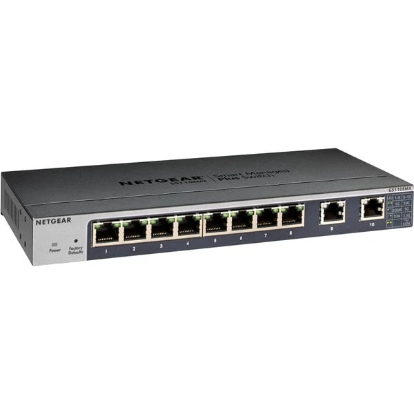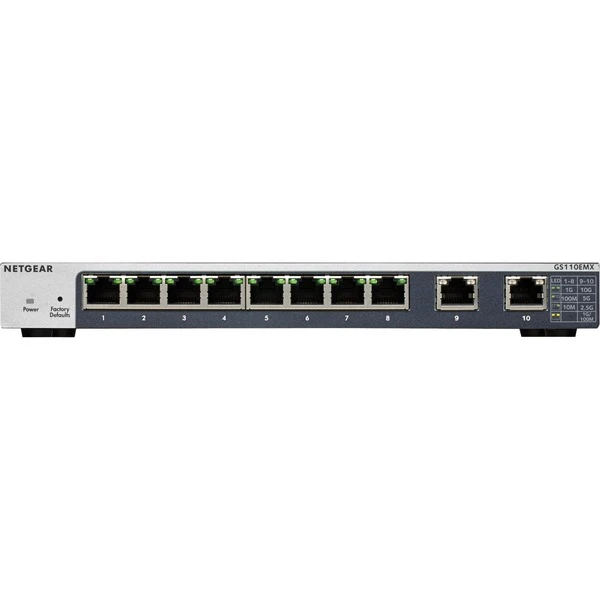 Der GS110MX und der GS110EMX sind ausgestattet mit acht Gigabit-Ethernet-Ports und zwei Uplink 10-Gigabit/MultiGigabit-Ports (5-Speed), die entweder 100-Megabit-, 1-Gigabit-, 2,5-Gigabit, 5-Gigabit- oder 10-Gigabit-Konnektivität liefern. Die beiden Uplink-Ports erkennen automatisch, welche Geschwindigkeit vom angeschlossenen Gerät benötigt wird und stellen diese zur Verfügung. Darüber hinaus können diese beiden Multi-Speed-Switch-Ports mit regulären Cat5E- Ethernet-Kabeln angeschlossen werden, ohne auf Cat6-Verkabelung umrüsten zu müssen. Dies spart Kosten und Aufwand für die Verkabelung.Art.-Nr.: 1391058