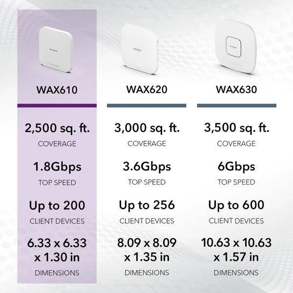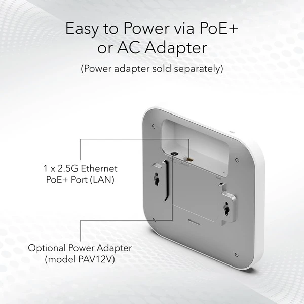 Der NETGEAR WAX610 WLAN Access Point ist ein Hochleistungsdualband 802.11ax AP, der einen aggregierten Durchsatz von bis zu 1,8 Gbot/s (600 Mbit/s für 2,4 GHz und 1,2 Gbit/s für 5 GHz) unterstützt. Der WAX610Y Access Point wird entweder in mehreren Modi betrieben werden und unterstützt neben dem Access Point Mode auch einen Router Mode, Repeater Mode oder Bridge Mode. Er ist bestens für Nutzer geeignet, die einen hohen Durchsatz, eine absolut überragende Leistung und eine umfassende WLAN-Abdeckung wünschen, wie in kleinen bis mittleren Unternehmen, in Bildungseinrichtungen sowie Hotels und der Gastronomie.Art.-Nr.: 1659986
