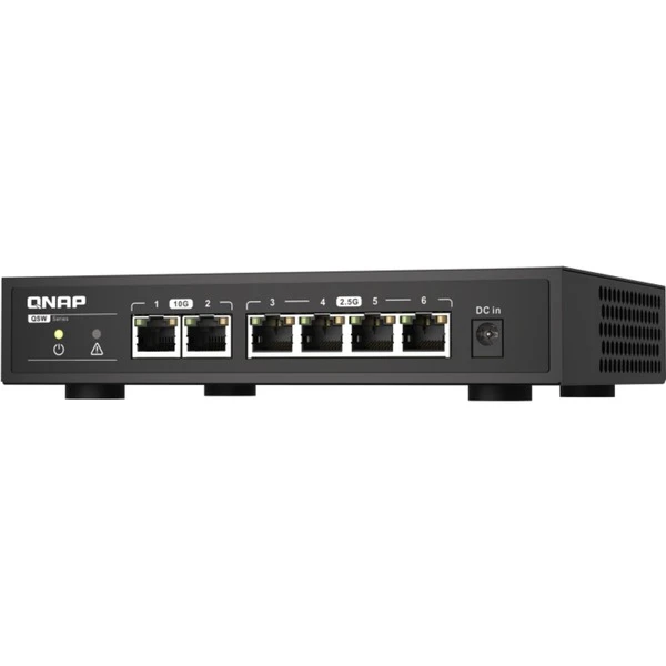Der QSW-2104-2T ist ein einfach zu bedienender unmanaged Switch mit 2-Port 10GbE RJ45 und 4-Port 2,5GbE RJ45, mit dem Sie Ihre Netzwerkumgebung durch den Anschluss einer größeren Anzahl von Geräten mit unterschiedlichen Bandbreitenanforderungen erweitern können. Mit seinem nahezu geräuschlosen lüfterlosen Design und der Konformität mit IEEE 802.3az (Energy Efficient Ethernet, EEE) arbeitet der QSW-2104-2T leise und mit optimaler Stromnutzung. Mit hoher Leistung und hervorragender Funktionalität ist der QSW-2104-2T die ideale Wahl für den Aufbau einer günstigen High-Speed Netzwerkumgebung in Ihrem Zuhause oder am Arbeitsplatz.