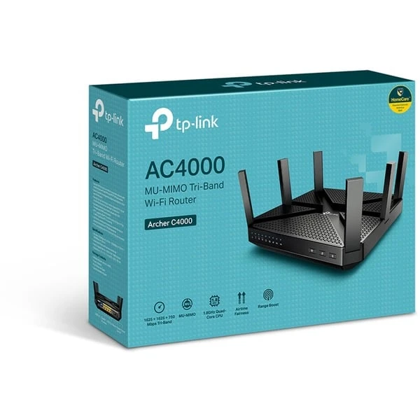 Der Archer C4000 unterstützt jedes Gerät und jede Anwendung, die in Ihrem Netzwerk läuft, mit einer 1,8 GHz 64-Bit Quad-Core-CPU. Mit einer 1,8 GHz 64-Bit Quad-Core-CPU und drei Co-Prozessoren liefert der Archer C4000 die nötige Performance, um eine schnelle und verzögerungsfreie Verbindung zu Spiel- und Streaming-Anwendungen sowie mobilen Geräten zu realisieren. Drei weitere WLAN-Prozessoren unterstützen die Quad-Core-CPU des Routers, um die WLAN-Performance auf Höchstgeschwindigkeit zu halten. Buffering-Probleme gehören von nun an der Vergangenheit an. Mit Tri-Band- und MU-MIMO-Technologie kann der WLAN-Router Archer C4000 mit mehreren Geräten gleichzeitig kommunizieren und Daten auf dem besten verfügbaren Band senden und empfangen. kann man, während die Familien 4K-Videos streamt, immer noch sorgenfrei Online-Games spielen.Art.-Nr.: 1345375