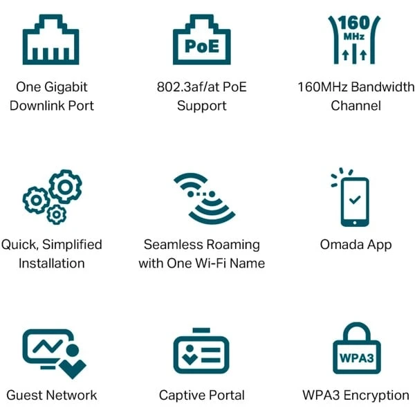 Der TP-Link EAP650-Wall sorgt für schnelles WLAN mit 6 Geschwindigkeiten: Gleichzeitige 574 MBit/s auf 2,4 GHz und 2402 MBit/s auf 5 GHz ergeben 2976 MBit/s WLAN-Geschwindigkeiten. Das Hocheffizientes Wi-Fi 6 sorgt für dafür das mehr verbundene Geräte, schnellere Geschwindigkeiten genießen können .Art.-Nr.: 100004389