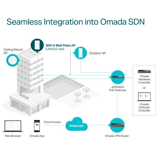 Der TP-Link EAP655-Wall sorgt mit Wi-Fi 6 für schnellere Geschwindigkeiten, geringere Verzögerungen, weniger Störungen und eine höhere Kapazität. Genießen Sie mehr als die doppelte Geschwindigkeit im Vergleich zu WiFi 5 mit dem neuen Business Wi-Fi 6 mit Geschwindigkeiten von bis zu 2976 Mbit/s.Art.-Nr.: 100004404