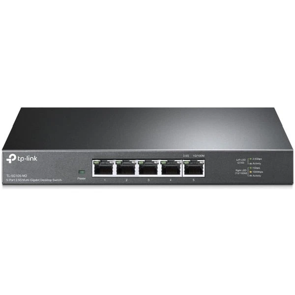 Der 5-Port-2.5 Gigabit-Desktop-Switch TL-SG105-M2 von TP-LINK bietet eine einfache Möglichkeit, den Übergang zum Gigabit-Ethernet zu wagen. Mit dem TL-SG105-M2 erhöht man die Geschwindigkeit der Netzwerk-Server und Backbone-Verbindungen oder macht die 2.5 Gigabit zur Realität am Arbeitsplatz. Außerdem ist der TL-SG105-M2 für einen geringeren Stromverbrauch ausgelegt. Der TL-SG105-M2 bietet superschnelle Verbindungen zu 2.5G NAS, 2.5G Server, Spielecomputer, 2.5G WiFi 6 AP, 4K Video und mehr.