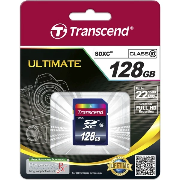 Diese Transcend-SDXC-Karte mit 128 GB Speicherkapazität entspricht der Speed Class 10. Die briefmarkengroße SDXC-Karte kann in vielen digitalen Produkten verwendet werden, wie z.B. MP3-Player, Handys, PDAs, Digitalkameras, Camcorder und Navigationssysteme. Die Karte bietet schnellen, zuverlässigen Datentransfer beim Kopieren, Downloaden und Sichern.Art.-Nr.: 1033269