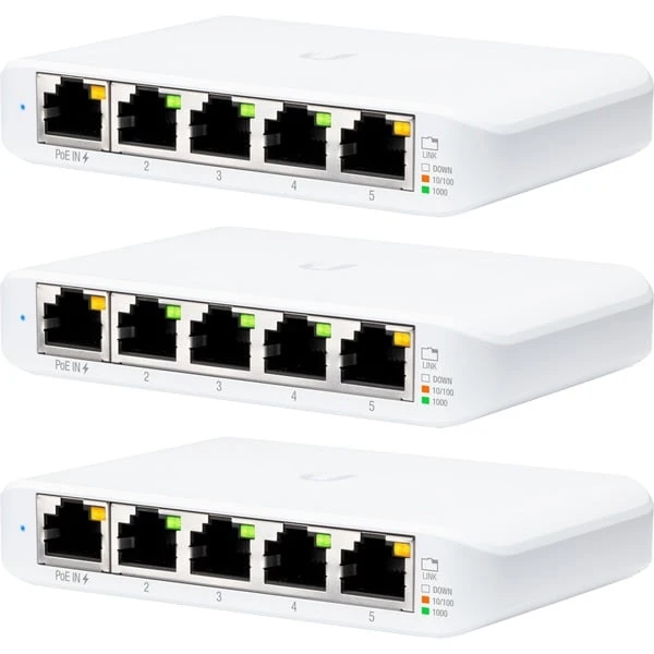 Der Switch UniFi Flex Mini (USW Flex Mini) ist ein vollständig verwalteter Layer-2-Switch mit (5) GbE RJ45-Ports, einschließlich 802.3af PoE-Eingang. Der USW Flex Mini kann entweder mit PoE (über Port 1) oder dem AUSB-C-Netzteil mit Strom versorgt werden. Dieser Switch kann mit der leistungsstarken, intuitiven UniFi Network-Webanwendung und der mobilen App auch von überall aus überwacht oder konfiguriert werden.Art.-Nr.: 1750399